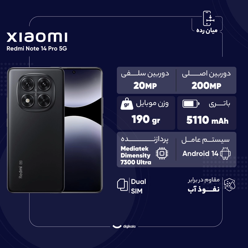 گوشی موبایل شیائومی مدل Redmi Note 14 Pro 5G دو سیم کارت ظرفیت 512 گیگابایت و رم 12 گیگابایت