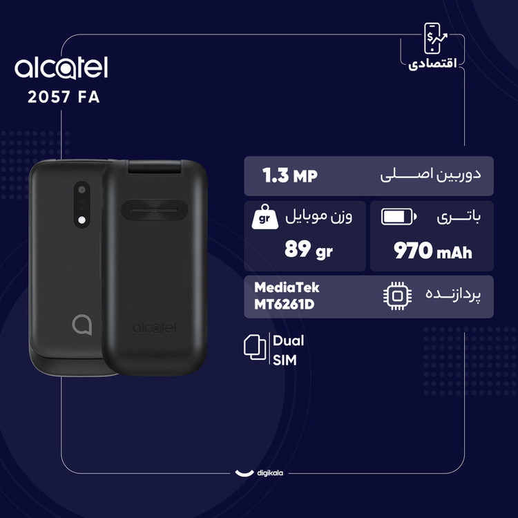 گوشیهای کلاسیک تاشو هنوز هم طرفداران بسیاری در بین کاربران دارند و شرکت آلکاتل هم در این زمینه توانسته است عملکرد بسیار خوبی را با معرفی محصولات باکیفیت از خود نشان دهد که گوشی آلکاتل مدل 2057 FA یکی از آنها است. این گوشی به صفحهنمایش با ابعاد 2.4 اینچ و رزولوشن 240×320 مجهز شده که ابعاد و رزولوشن مناسب سبب شده تا وضوح تصویر خوب و نمایش آیکون مناسبی را شاهد باشید. در قسمت پشتی این گوشی هم یک سنسور دوربین با رزولوشن 1.3 مگاپیکسل در نظر گرفته شده که برای ثبت تصاویر معمولی گزینه مناسبی است. این گوشی به باتری با میزان ظرفیت 970 میلیآمپرساعت مجهز شده که همانند اکثر گوشیهای کلاسیک، توانایی ارائه زمان آماده بهکار بسیار خوبی را به ازای هر بار شارژ صد درصدی دارد و با هر بار شارژ میتوانید تا چند روز از آن استفاده کنید. پشتیبانی از کارت حافظه جانبی تا حداکثر میزان 32 گیگابایت هم سبب شده تا نگرانی برای ذخیره اطلاعات نداشته باشید. ابعاد مناسب و البته وزن 89 گرمی این گوشی هم سبب شده تا نهتنها فضای کمی را اشغال کند، بلکه در استفاده طولانی مدت هیچ خستگی برای دست بههمراه نخواهد داشت. لازم به ذکر است که این گوشی از کیبورد فارسی هم بهره مند شده است. در مجموع اگر به دنبال خرید گوشی کلاسیک با ابعاد مناسب و مشخصات فنی قابل قبولی هستید که در اجرای فعالیتهای روزمره عملکرد خوبی داشته باشد، آلکاتل 2057 FA میتواند گزینه بسیار مناسبی باشد.
