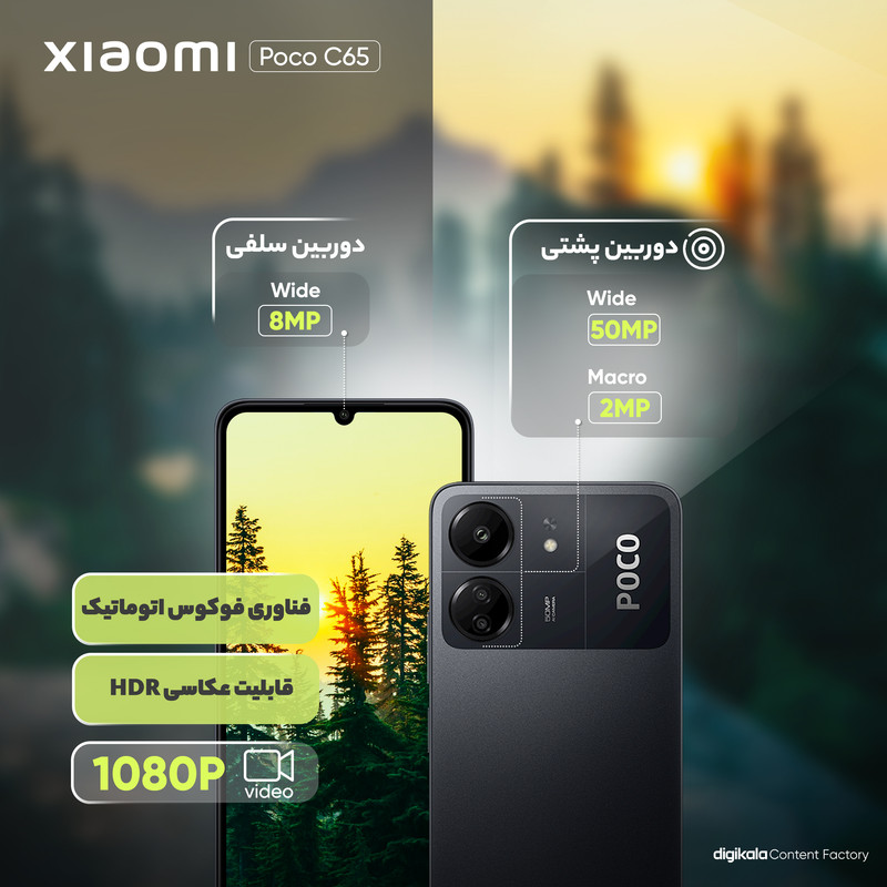 شاید شما هم به دنبال خرید گوشی هوشمندی باشید که در کنار بهره بردن از مشخصات فنی مناسب، قیمت مقرون بهصرفهای هم داشته باشد و شیائومی Poco C65 میتواند یکی از انتخابهای مناسب برای شما باشد. این گوشی به نسبت قیمت در نظر گرفته شده از مشخصات فنی مناسبی بهره برده است. در نمای روبهرویی این گوشی به صفحهنمایش با ابعاد 6.74 اینچ و رزولوشن 720×1600 پیکسل از نوع IPS مجهز شده که توانایی نمایش 260 پیکسل در هر اینچ را دارد. در مورد صفحهنمایش این گوشی باید بگوییم که باید توقعی در حد و اندازه یک گوشی اقتصادی را از آن داشته باشید و از طرفی نرخ بروزرسانی 90 هرتز آن سبب شده تا عملکرد به نسبت روان و بدون لگ داشته باشد. در قسمت پشتی این گوشی شاهد قرارگیری یک سنسور دوربین اصلی با رزولوشن 50 مگاپیکسل در کنار سنسور 2 مگاپیکسل ماکرو هستیم. سنسور دوربین اصلی 50 مگاپیکسل این گوشی برای عکاسی در نور روز و در جایگاه یک گوشی میانرده میتواند توقعات شما را تا میزان بسیار زیادی برآورده کند. دوربین سلفی 8 مگاپیکسل هم برای برقراری تماسهای تصویری عملکرد بسیار خوب و کاملا قابل قبولی دارد. حضور پردازنده هلیو G85 شرکت مدیاتک هم سبب شده تا شیائومی Poco C65 در اجرای بازیهای نهچندان سنگین و فعالیتهای روزمره، عملکرد روان و مناسبی داشته باشد. این گوشی به باتری با میزان ظرفیت 5000 میلیآمپرساعت مجهز شده که باید بدانید به ازای هر بار شارژ صد درصدی، توانایی ارائه زمان آماده بهکار یک و نیم روز را برای حالت استفاده معمولی دارد. در مجموع باید بگوییم که با یک گوشی به نسبت اقتصادی روبهرو هستید که به ازای قیمت در نظر گرفته شده از مشخصات مناسبی بهره برده و از طرفی برای استفاده روزمره گزینه بسیار مناسبی است.