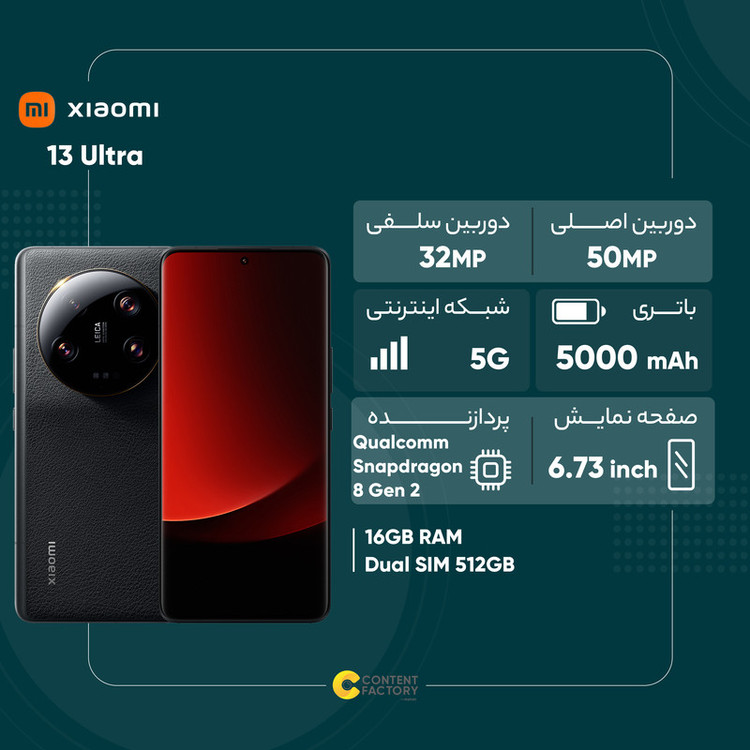 شیائومی در چند سال اخیر ثابت کرد که در زمینه گوشیهای هوشمند پرچمدار، حرفهای بسیاری برای گفتن دارد و شیائومی 13 Ultra یکی از پرچمداران قدرتمند این شرکت است که با دست پر و مشخصات فنی قدرتمند وارد میدان رقابت شده است. صفحهنمایش 6.73 اینچ با رزولوشن 1440×3200 پیکسل از نوع LTPO AMOLED که توانایی نمایش بسیار خوب 522 پیکسل در هر اینچ را دارد، وضوح تصویر فوقالعاده، نمایش رنگ چشمنوار و دقت تصویر بینظیری را به شما ارائه میکند. از طرفی نرخ بروزرسانی 120 هرتز هم عملکرد روان و بدون لگ را با خود به ارمغان آورده و البته حداکثر روشنایی 2600 نیت (nits)، حتی زیر تابش مستقیم نور خورشید هم وضوح تصویر بسیار عالی و چشمنوازی دارد. در قسمت پشتی هم این گوشی به یک سنسور دوربین 50 مگاپیکسل اصلی در کنار سنسور 50 مگاپیکسل پریسکوپ تلهفوتو بههمراه سنسور 50 مگاپیکسل تلهفوتو و سنسور 50 مگاپیکسل فوقعریض مجهز شده است. با زبان ساده باید بگوییم که این سنسورهای دوربین قدرتمند در زمینه عکاسی نور روز و نور شب و فیلمبرداری، تمام و کمال توقعات شما را برآورده میکند و کاملا لایق نام پرچمدار است. برای دوربین سلفی هم سنسور با رزولوشن 32 مگاپیکسل در نظر گرفته شده که در نور روز و نور شب عملکرد بسیار خوبی دارد. حضور پردازنده اسنپدراگون 8 نسل 2 شرکت کوالکام سبب شده تا این گوشی بهراحتی هرچه تمامتر از پس اجرای بازیهای سنگین و بهروز دنیا بربیاید. باتری 5000 میلیآمپرساعت این گوشی هم به ازای هر بار شارژ صد درصدی، توانایی ارائه زمان آماده بهکار نزدیک به دو روز را در شرایط استفاده معمولی دارد. از طرفی پشتیبانی از فناوری شارژ سریع 90 وات هم امکان شارژر صفر تا صد درصدی را در مدت زمان 35 دقیقه فراهم کرده است. در مجموع باید بگوییم که اگر به دنبال خرید گوشی هوشمند پرچمدار همهچیز تمام هستید، بدون شک، شیائومی 13 Ultra میتواند یکی از بهترین انتخابهای ممکن برای شما باشد.