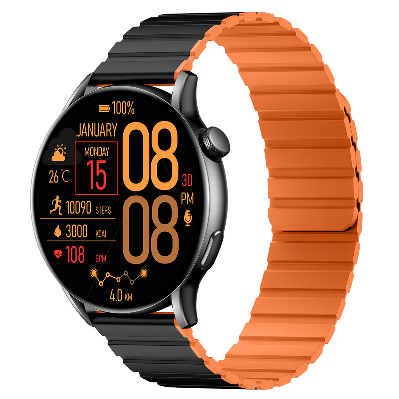ساعت هوشمند گلوریمی مدل M2 MAX دارای قابلیت های صفحه نمایش رنگی، صفحه نمایش لمسی، قابلیت مکالمه از طریق بلوتوث بند سیلیکون
