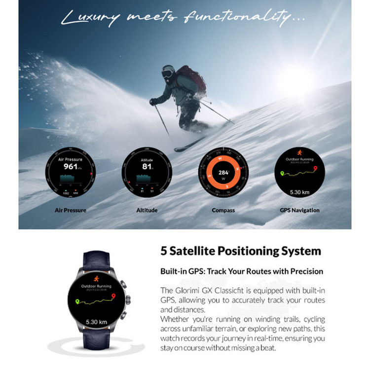 مجهز به سیستمعامل Glorimi OS / شارژدهی تا ۴۵ روز در حالت ذخیره انرژی / شارژدهی تا ۱۰ روز در استفاده عادی / مجهز به عملکرد AGPS / پشتیبانی از ۵ سیستم ماهوارهای موقعیتیابی / مقاوم در برابر آب تا عمق ۵۰ متر