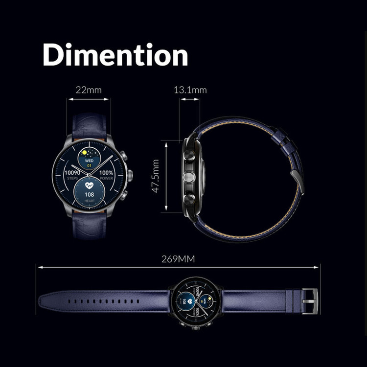 ساعت هوشمند 47 میلی متری گلوریمی مدل GX CLASSICFIT (LIMITED EDITION) بند چرمی
