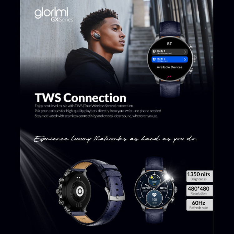ساعت هوشمند گلوریمی مدل GX CLASSICFIT (LIMITED EDITION) با بندچرمی، ترکیبی از طراحی کلاسیک و فناوریهای بهروز که برای آقایانی باسلیقه خاص طراحیشده است. قاب دایرهای این ساعت با بدنهای از آلیاژ روی و صفحهنمایش AMOLED، نمایی زیبا و حرفهای به آن میبخشد و با بندچرمی خوشساخت، حس یک ساعت لوکس را به همراه دارد. صفحهنمایش ۱.۶ اینچی این مدل با وضوح ۴۸۰×۴۸۰ پیکسل، روشنایی ۱۳۵۰ نیت و نرخ نوسازی ۶۰ هرتز، کیفیت بصری جذابی را ارائه میدهد. این ساعت هوشمند با سیستمعامل Glorimi OS و پردازنده دو هستهای عملکرد روانی دارد و ازنظر سختافزاری هم بسیار کامل است. پشتیبانی از ۱۷۰ حالت ورزشی، تشخیص خودکار حرکات ورزشی، سنجش ضربان قلب، اکسیژن خون، کیفیت خواب و حتی نظارت بر سیکل ماهیانه بانوان، آن را به یک همراه حرفهای در فعالیتهای ورزشی و پایش سلامتی تبدیل کرده است. باتری ۴۵۰ میلیمتری GX CLASSICFIT میتواند تا ۴۵ روز در حالت ذخیره انرژی و تا ۱۰ روز در استفاده عادی دوام بیاورد. قابلیت مکالمه از طریق بلوتوث، صفحه همیشه روشن و امکان ذخیرهسازی ۱۰۰ آهنگ و ۵۰ عکس از دیگر ویژگیهای کاربردی Glorimi GX CLASSICFIT هستند. همچنین، مقاومت در برابر آب تا عمق ۵۰ متر، آن را برای استفاده در شرایط گوناگون، حتی هنگام شنا، مناسب کرده است. درمجموع، این ساعت هوشمند انتخابی مناسب برای افرادی است که در عین نیاز به فناوریهای پیشرفته ساعتهایی با ظاهر کلاسیک را میپسندند.