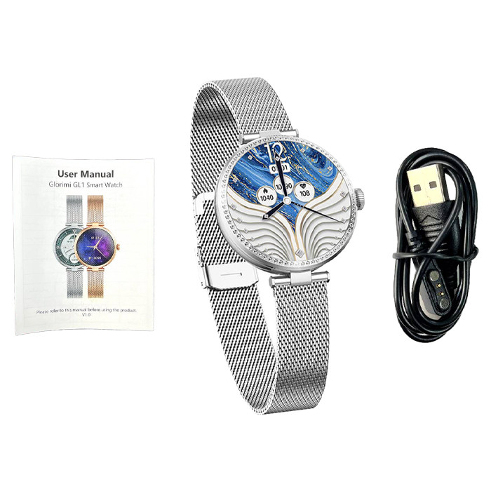 ساعت هوشمند گلوریمی مدل GL1 (مخصوص بانوان) دارای قابلیت های قابلیت مکالمه از طریق بلوتوث بند استیل