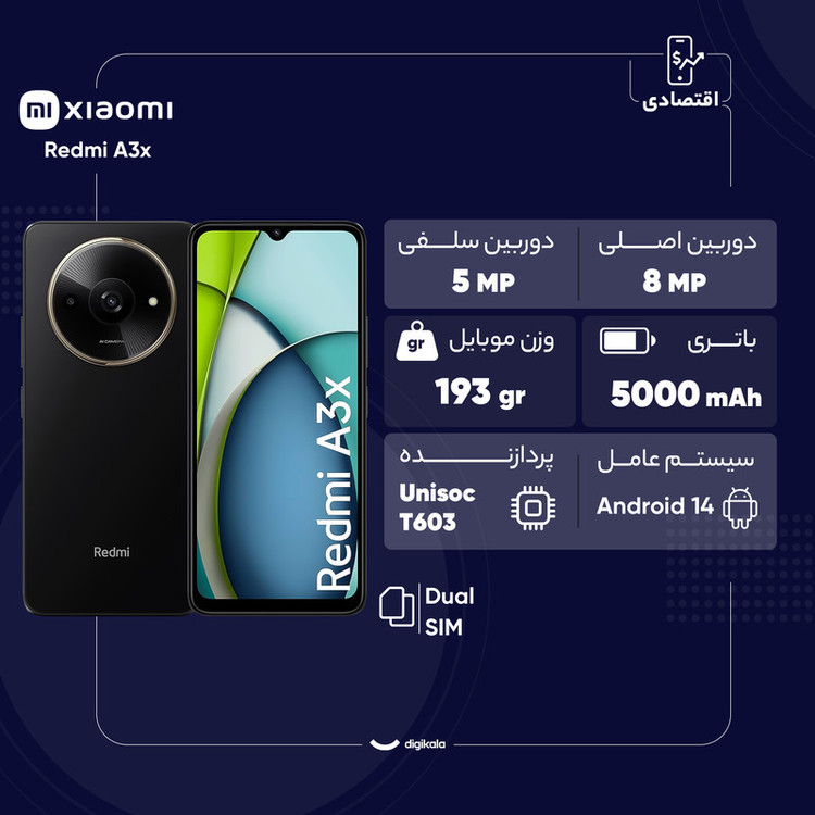 گوشی موبایل شیائومی مدل Redmi A3x دو سیم کارت ظرفیت 64 گیگابایت و رم 3 گیگابایت